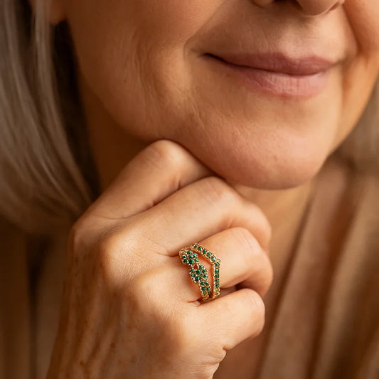 Sale 80%Serena Emerald Duo Ring Gold Set