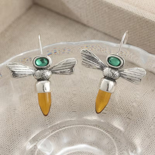 Verdant Whisper Honeybee Elegance Drop Earrings
