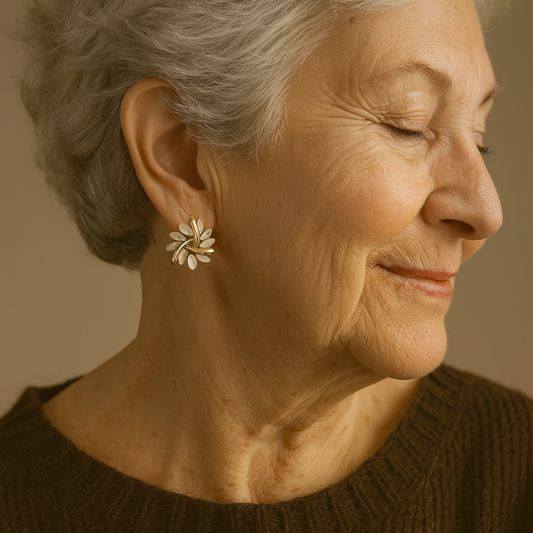 Sleva 70%Květinové náušnice ze stříbra a zlata
