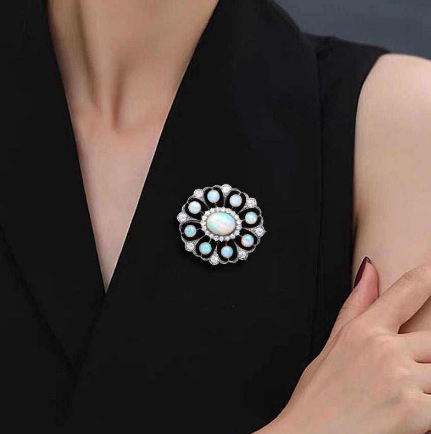 Whether you wear it to a formal gathering or to simply add a hint of elegance to your outfit, this opal brooch captures the essence of grace and refinement. A timeless accessory, it is destined to become a cherished addition to your jewelry collection.