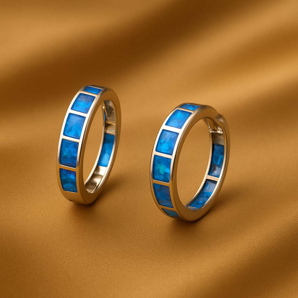 Kolczyki Niebieski Opal Oceaniczny w Srebrze oddają spokojne piękno oceanu, zamknięte w stylowej biżuterii. Starannie dobrane opale tworzą niezwykłe refleksy barw zmieniających się przy każdym ruchu.