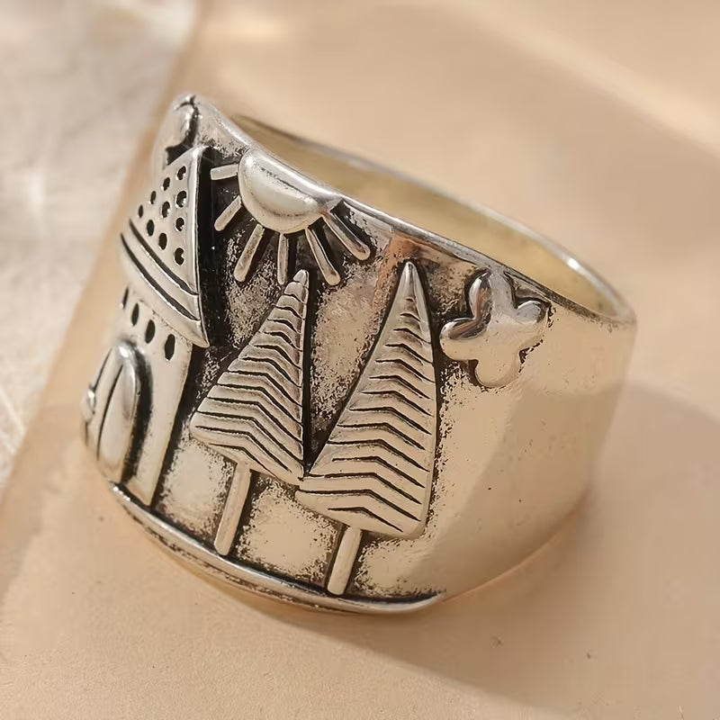 Designed to be worn with confidence, the Whispering Pines Serenity Band offers a timeless silhouette that flatters the hand and pairs beautifully with other jewelry. Its smooth curves and balanced width create a harmonious presence that suits refined taste and lasting style.